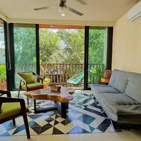 El apartamento está ubicado en el distrito Zama, a una distancia de 3 km del Parque Nacional Tulum. El apartamento está situado a 15 minutos a pie del centro de Tulum.